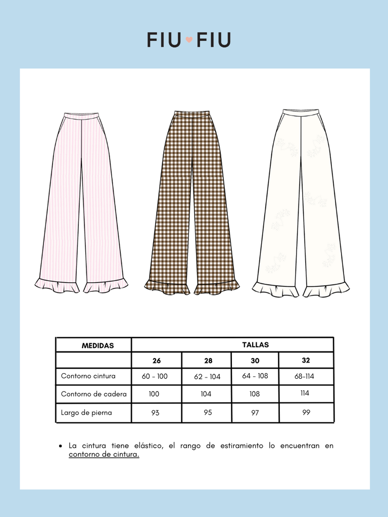- Pretina con elastico a la cintura.